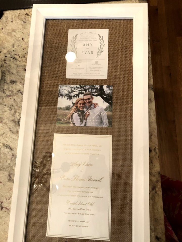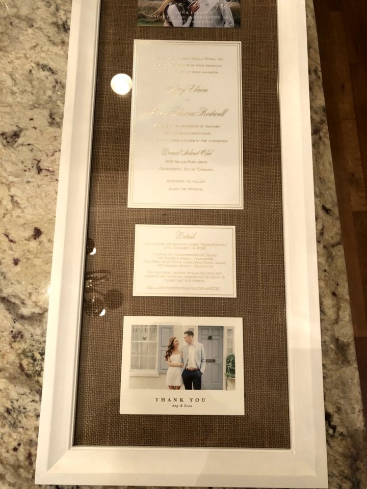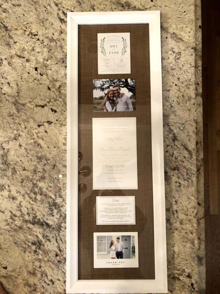 She loved it. She told me she hadn’t thought to save all the invitations herself, and seeing them together in a display made her emotional in the best way. Now the frame hangs in her home, and it’s a reminder of the lead-up to her wedding and all the people who were rooting for her along the way.