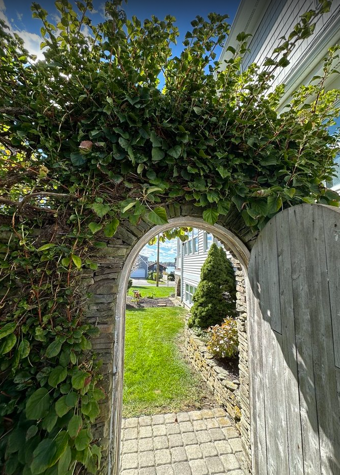 At the heart of this design is intentionality. Begin with your entrance. A white garden door crowned by a classic arbor provides more than a functional gateway; it sets the tone for the entire experience. An arbor introduces vertical interest and echoes the grace of traditional New England gardens. If you’re planning your own space, consider a wooden or metal arbor draped with climbing plants like clematis or roses to add seasonal color and a sense of arrival.