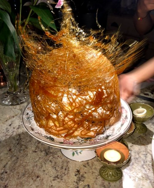 Our vision for the baby shower centered around the theme of bees and hives, inspired by the idea of community, sweetness, and nurturing—fitting metaphors for welcoming a new child. Each table was adorned with a croquembouche centerpiece, crafted to look like a beehive. These towering structures of cream-filled pastry puffs were decorated with spun sugar webs and tiny candy bees that seemed to buzz playfully over the golden towers. The effect was both whimsical and elegant, capturing the essence of a natural hive without feeling kitschy.