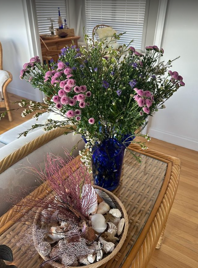 In smaller details, my grandmother’s thoughtful touches are everywhere. Olive-oil bottles wrapped in shells and rope, driftwood bowls, lanterns tied with marine twine, and small succulents in shell planters add personality without clutter. She carefully kept the decor minimal, knowing that fewer, well-chosen accents feel richer than over-decorated spaces. Subdued coastal elements deliver the same effect as themed collections without risking a dated look .