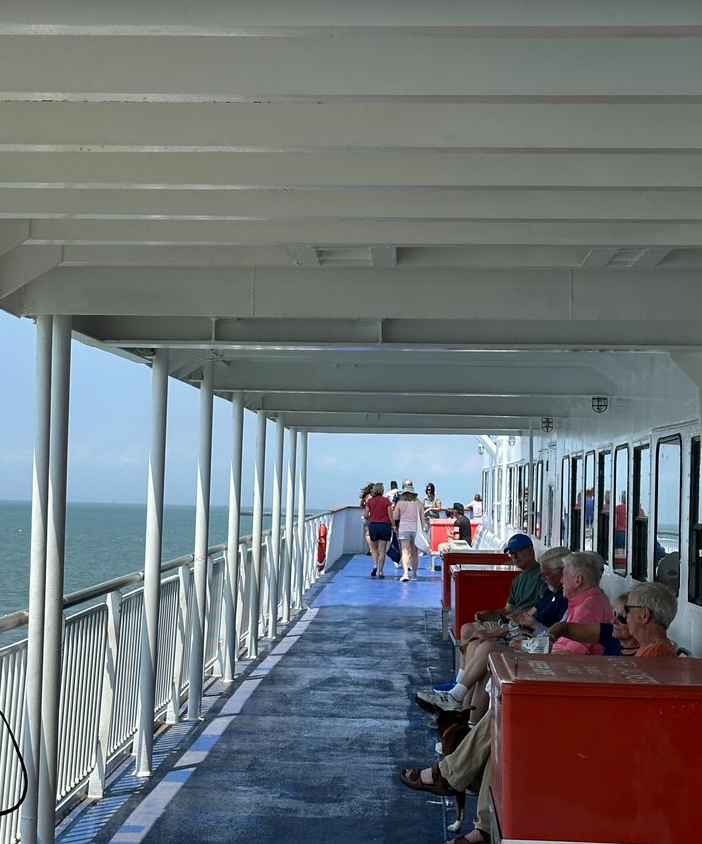 Whether you’re driving on with your car or walking on foot, there’s an easy rhythm to the boarding process. I’ve done both options, and each has its perks. If you drive on, just be sure to arrive at least 45 minutes early to get checked in and lined up in your vehicle. Walking on gives you more freedom to roam and really embrace the journey—you’re just a person, a tote bag, and the open water.